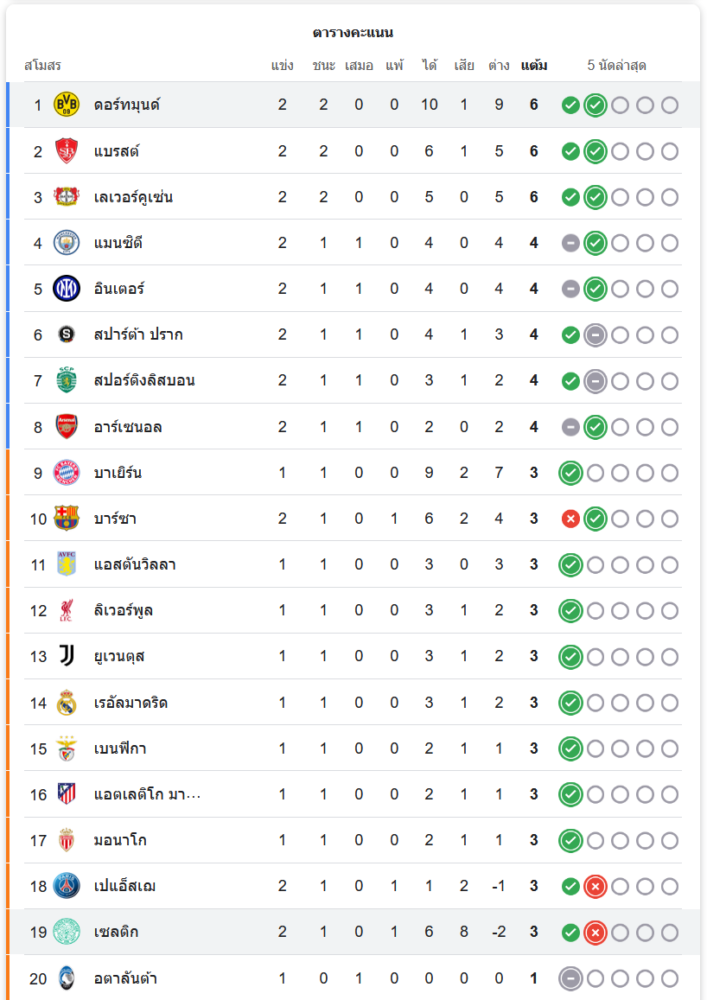 จากผลการแข่งขันในนัดนี้ ดอร์ทมุนด์ ขึ้นนำเป็นจ่าฝูงในกลุ่ม ด้วยผลงานชนะสองนัดรวด เก็บได้ 6 คะแนนเต็ม และมีผลต่างประตูได้เสียถึง +9 ขณะที่ เซลติก รั้งอันดับ 19 ในตารางคะแนน มีเพียง 3 คะแนนจากการแข่งสองนัด และมีผลต่างประตูได้เสีย -2 ซึ่งแสดงให้เห็นว่าพวกเขาต้องปรับฟอร์มอย่างหนักหากต้องการกลับมาสู่การแข่งขันในรอบต่อไป