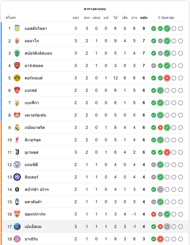 สถานการณ์ในตารางคะแนน