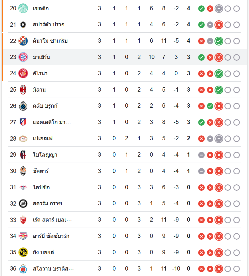 หลังจากจบเกมนี้ บาร์เซโลน่า ขยับขึ้นมาอยู่ในอันดับที่ 10 ของตาราง โดยมี 6 คะแนน จาก 3 นัด ขณะที่ บาเยิร์น มิวนิค ยังคงอยู่ในอันดับที่ 23 มีเพียง 3 คะแนน และต้องเร่งฟอร์มเพื่อเก็บแต้มในนัดถัดไป