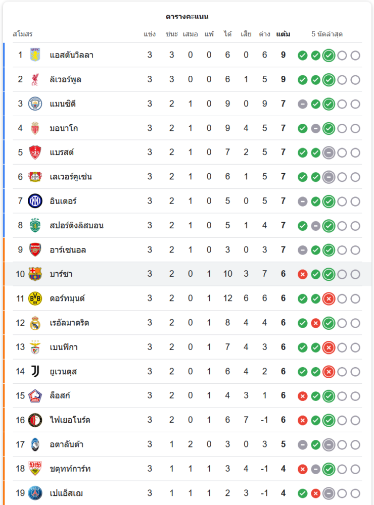 สถานการณ์ในตารางคะแนน
