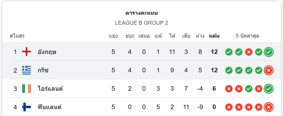 ผลบอลสด จากศึก ยูฟ่าเนชันส์ลีก 2024 ในวันนี้ ทีมชาติอังกฤษแสดงความแข็งแกร่งเหนือเจ้าถิ่นกรีซ โดยเอาชนะไปได้อย่างขาดลอย 3-0 ในแมตช์กลุ่ม F นัดที่ 5 ซึ่งการพบกันครั้งนี้ อังกฤษเดินเกมรุกได้ดีตั้งแต่เริ่มต้นและสามารถจบสกอร์ได้คมชัด ส่วนกรีซพยายามต้านทานแต่กลับไม่สามารถเจาะแนวรับของอังกฤษได้