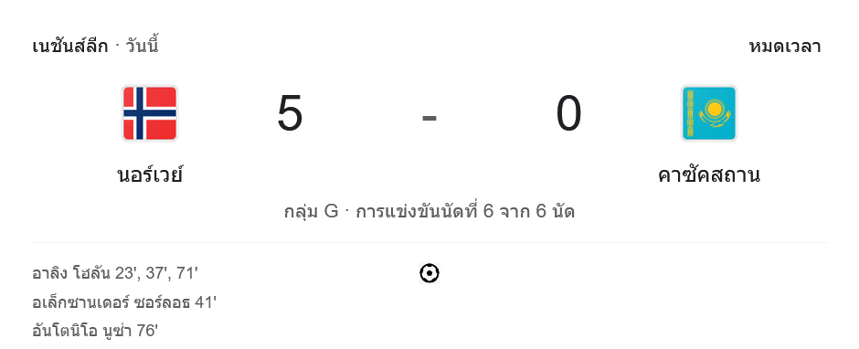 การแข่งขันศึก ยูฟ่าเนชันส์ลีก 2024 ระหว่าง นอร์เวย์ พบ คาซัคสถาน บ้านผลบอลรายงานว่าเป็นเกมที่เจ้าถิ่นนอร์เวย์โชว์ฟอร์มสุดแกร่ง เปิดบ้านถล่มผู้มาเยือนคาซัคสถานไปด้วยสกอร์ขาดลอย 5-0 เออร์ลิง ฮาแลนด์ ศูนย์หน้าตัวเก่งของทีม ทำแฮตทริกได้อย่างน่าประทับใจ