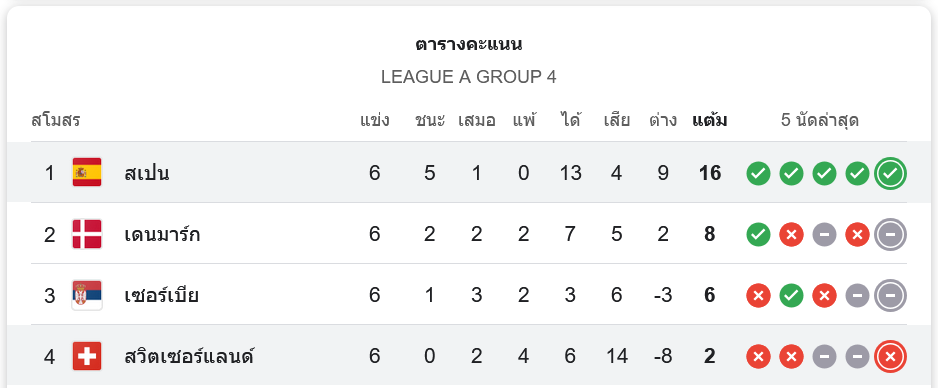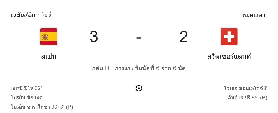จาก : ผลบอลสด ยูฟ่าเนชันส์ลีก 2024 ระหว่าง สเปน 3-2 สวิตเซอร์แลนด์ วันนี้ 19/11/67 – บ้านกีฬา