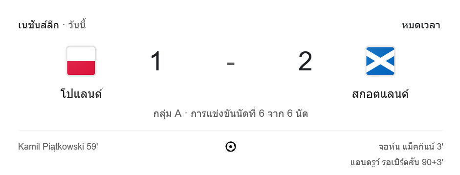 จาก : ผลบอลสด ยูฟ่าเนชันส์ลีก 2024 ระหว่าง โปแลนด์ 1-2 สกอตแลนด์ วันนี้ 19/11/67 – บ้านกีฬา