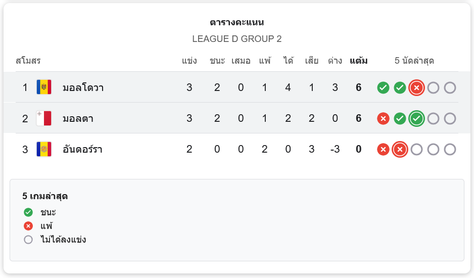 ตารางคะแนนยูฟ่าเนชันส์ลีก 2024 ระหว่าง มอลตา 1-0 มอลโดวา