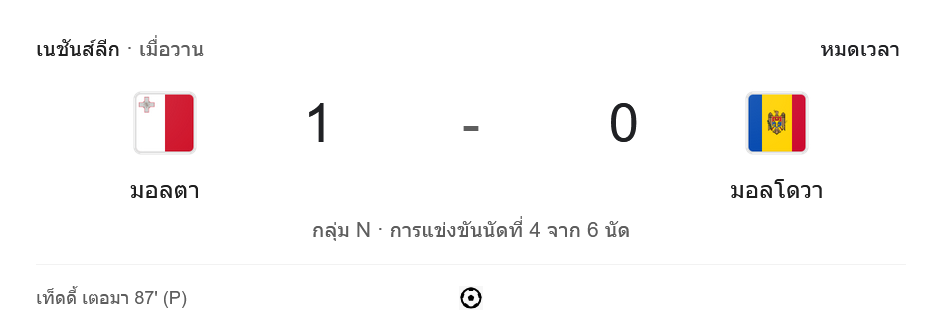 ผลบอลยูฟ่าเนชันส์ลีก 2024 ระหว่าง มอลตา 1-0 มอลโดวา วันนี้ 14/10/67