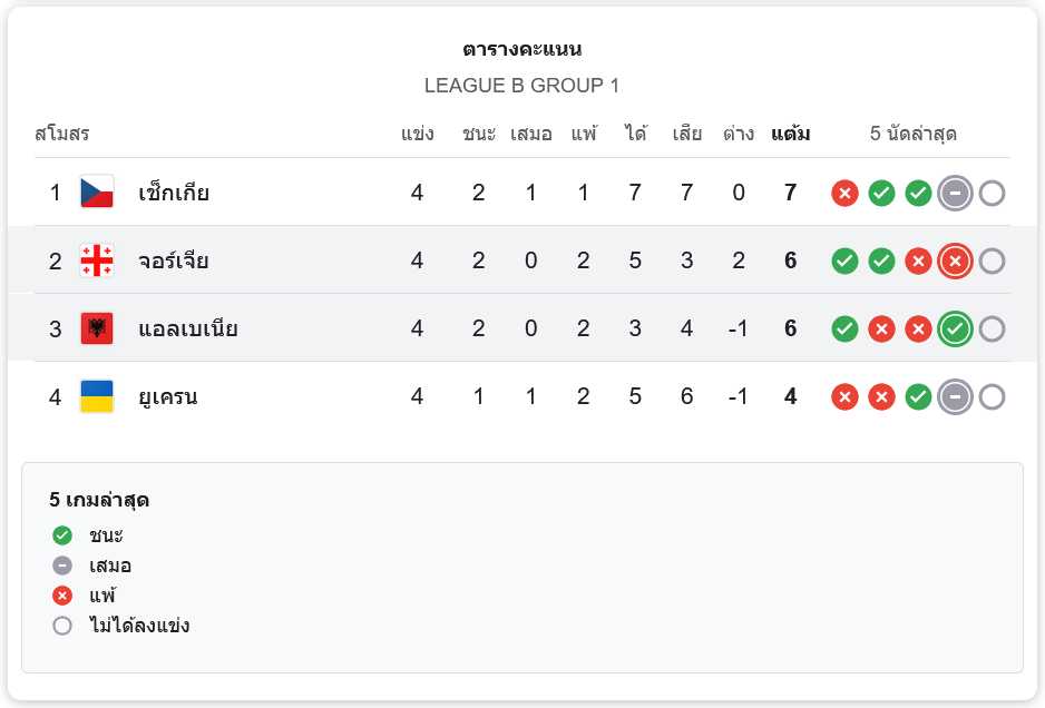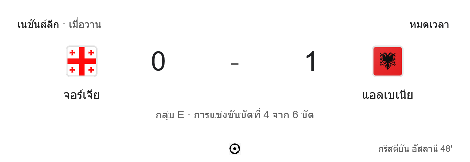 ตารางคะแนนยูฟ่าเนชันส์ลีก 2024 ระหว่าง จอร์เจีย 0-1 แอลเบเนีย