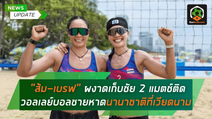 ศึกวอลเลย์บอลชายหาดนานาชาติ Sanest Khanh Hoa Cup 2025 ที่จัดขึ้น ณ เมืองญาจาง ประเทศเวียดนาม ระหว่างวันที่ 5-9 มิถุนายน 2568 กลายเป็นเวทีแจ้งเกิดของสองนักตบลูกยางสาวทีมชาติไทยอย่าง “ส้ม” ธนะรัศมิ์ฐา อุดมฉวี และ “เบรฟ” รำไพพฤทธิ์ นุ่มวงศ์ ที่โชว์ฟอร์มดุเดือด ร้อนแรงเกินต้าน เก็บชัยชนะติดต่อกันถึงสองนัด ลุ้นเข้ารอบต่อไปในฐานะทีมเต็งของสาย