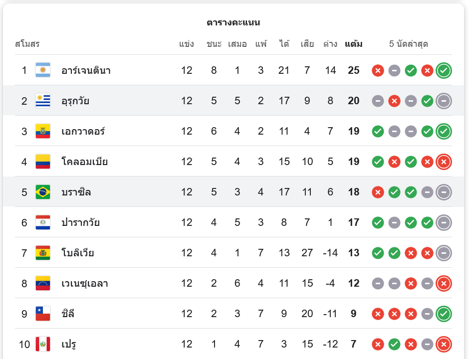 สถานการณ์ในตารางคะแนน