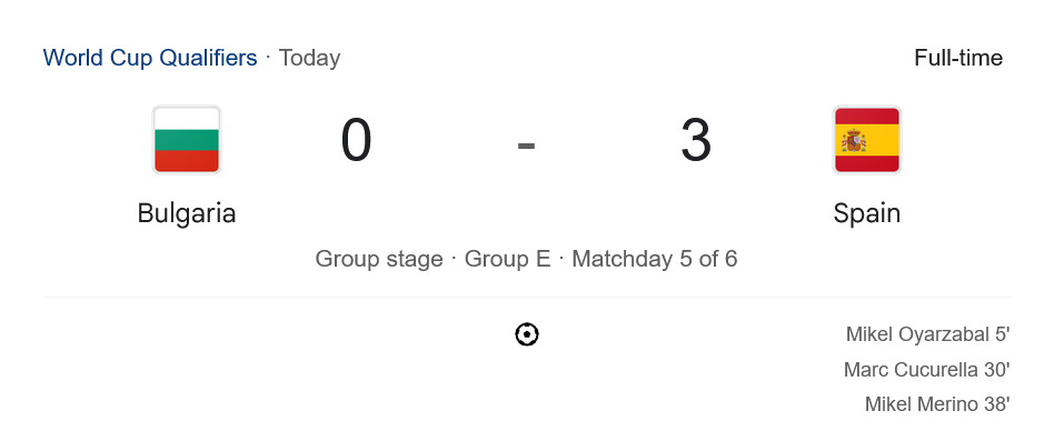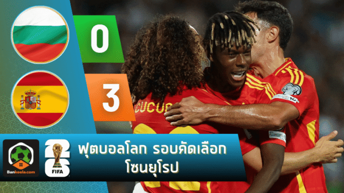 จาก : ผลบอลสด ฟุตบอลโลก 2026 รอบคัดเลือก โซนยุโรป กลุ่ม E ระหว่าง บัลแกเรีย 0-3 สเปน วันนี้ 5/9/68 – บ้านกีฬา