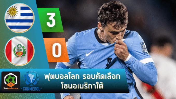 บ้านผลบอล สรุปหลังเกม อุรุกวัยเหนือชั้น! ไล่ถล่มเปรู 3-0 คว้าชัยสุดดุดัน ศึกคัดบอลโลก 2026 โซนอเมริกาใต้