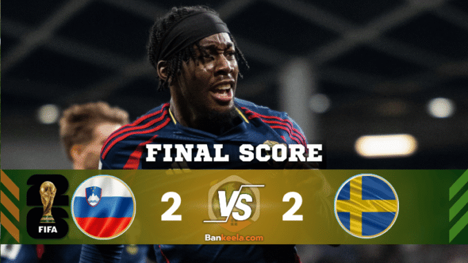ศึกฟุตบอลโลก 2026 รอบคัดเลือก โซนยุโรป กลุ่ม B จบลงอย่างสุดมันส์ เมื่อ สโลวีเนีย เปิดบ้านเสมอ สวีเดน ไปแบบสุดระทึก 2-2 โดย “บ้านกีฬา” พร้อมเสิร์ฟ ผลบอลสด พร้อมเหตุการณ์สำคัญแบบนาทีต่อนาที ที่คุณห้ามพลาดเด็ดขาดในเกมนี้!
