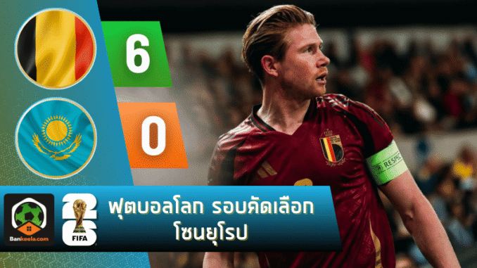 บ้านผลบอล สรุปหลังเกม ฟุตบอลโลก 2026 รอบคัดเลือก เบลเยียมโหดจัด! เปิดบ้านถล่มคาซัคสถาน 6-0 ขยับจี้จ่าฝูงกลุ่ม J
