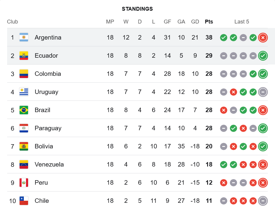 ชัยชนะนัดนี้ทำให้เอกวาดอร์เก็บเพิ่มเป็น 29 คะแนน ขยับรั้งอันดับ 2 ของตารางโซนอเมริกาใต้ ทิ้งห่างกลุ่มตามล่าตั๋วเพลย์ออฟได้สบาย ขณะที่อาร์เจนตินายังนำเป็นจ่าฝูงที่ 38 แต้ม แต่ความพ่ายแพ้ทำให้เสียสถิติไร้พ่ายในช่วงหลัง ตารางคะแนนยังคงเปิดกว้างสำหรับทีมกลางตารางอย่าง โคลอมเบีย อุรุกวัย และบราซิลที่มี 28 คะแนนเท่ากัน