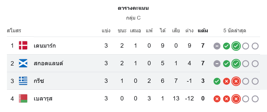 โปรแกรม ตารางบอล ของทั้งสองทีมยังเข้มข้น สกอตแลนด์มีคิวเปิดบ้านรับ เบลารุส ในวันที่ 12 ตุลาคม ส่วนกรีซต้องบุกไปเยือนเดนมาร์กในวันที่ 13 ตุลาคม ซึ่งทั้งสองแมตช์ถือเป็นเกมชี้ชะตาสำคัญของกลุ่มนี้