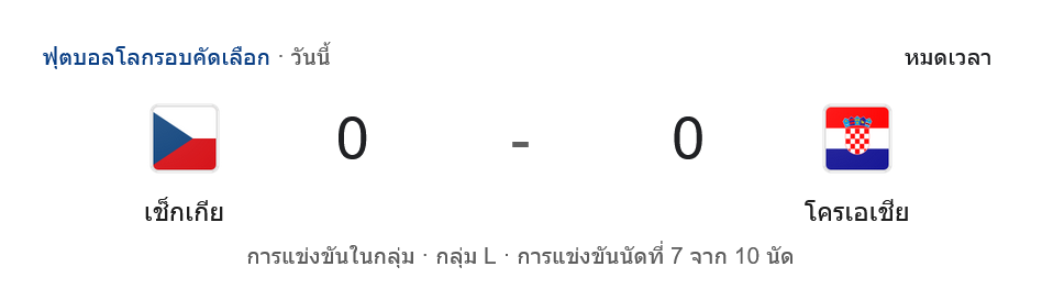 ค่ำคืนนี้ ศึก ฟุตบอลโลก รอบคัดเลือก โซนยุโรป กลุ่ม L จบลงแบบตึงเครียดสุดๆ เมื่อ สาธารณรัฐเช็ก เปิดบ้านเสมอกับ โครเอเชีย 0-0 ในเกมที่ทั้งสองฝ่ายเปิดเกมบุกใส่กันอย่างเข้มข้นตั้งแต่ต้นจนจบ โดยแฟนบอลที่ติดตาม ผลบอลสด ตลอดทั้งแมตช์สัมผัสได้ถึงความกดดันและความเข้มข้นระดับสูง แม้ไม่มีประตูเกิดขึ้นแต่ก็ถือเป็นเกมใหญ่ที่ทั้งสองทีมสู้กันอย่างสมศักดิ์ศรี