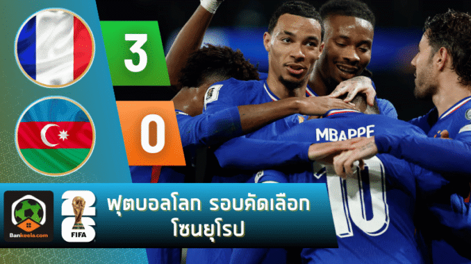 บ้านกีฬา สรุปผลการแข่งขันศึกคัดบอลโลกโซนยุโรปอย่างดุเดือด ผลการแข่งขัน ผลบอลสด จากสนามฝรั่งเศส เจ้าถิ่น “ตราไก่” โชว์ฟอร์มเหนือชั้นเปิดบ้านอัด อาเซอร์ไบจาน 3-0 โดยเกมนี้ คีเลียน เอ็มบัปเป้ คือคนที่ทำให้ทุกอย่างง่ายขึ้น ทั้งยิงทั้งจ่าย พาทีมเก็บ 3 แต้มสำคัญแบบไม่เสียประตู