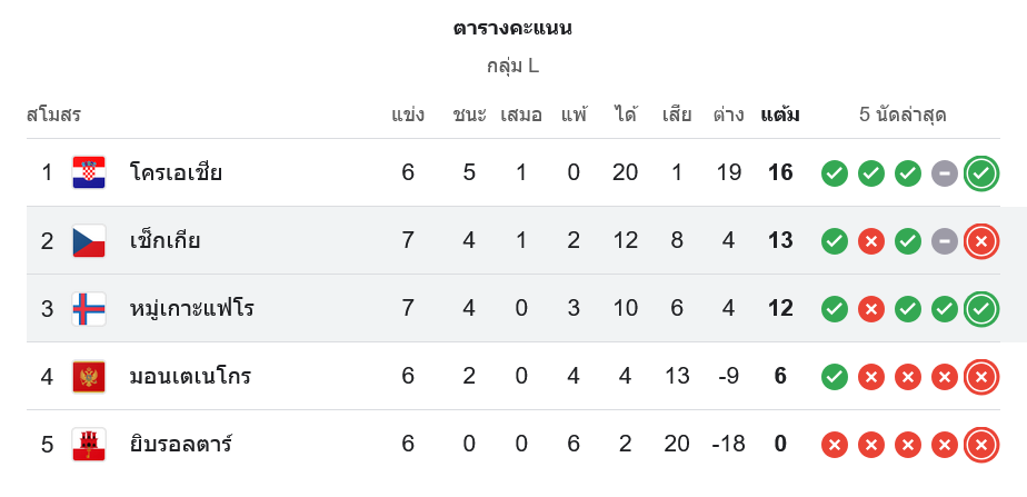 สำหรับโปรแกรม ตารางบอล นัดถัดไปของหมู่เกาะแฟโร พวกเขาจะบุกเยือน โครเอเชีย ในวันที่ 15 พฤศจิกายน 2025 ซึ่งเป็นเกมชี้ชะตาการเข้ารอบโดยตรง ส่วนเช็กจะเปิดบ้านเจอ ยิบรอลตาร์ ในวันที่ 18 พฤศจิกายน 2025 ซึ่งพวกเขาต้องการชัยชนะเพื่อรักษาตำแหน่งโควตารองจ่าฝูง