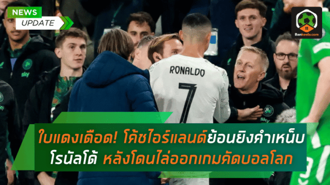 เกมฟุตบอลโลก 2026 รอบคัดเลือก โซนยุโรป กลุ่ม เอฟ นัดที่ ทีมชาติไอร์แลนด์ เปิดบ้านอัด โปรตุเกส 2-0 ไม่ได้มีเพียงผลแข่งที่พลิกล็อกเท่านั้น แต่ยังเต็มไปด้วยดราม่าควันหลง โดยเฉพาะจังหวะที่ คริสเตียโน่ โรนัลโด้ ถูกไล่ออกจากสนามแบบสุดร้อน พร้อมประเด็นปะทะเดือดนอกเกมที่ทำเอาสนามแทบลุกเป็นไฟ
