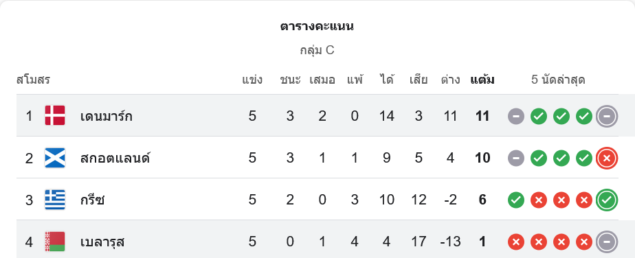 กล่าวง่าย ๆ คือหนึ่งแต้มในบ้านเกมนี้ แม้จะน่าผิดหวัง แต่ยังทำให้เดนมาร์กคุมชะตาตัวเองได้อยู่ หากไม่พลาดในเกมใหญ่กับสกอตแลนด์ ส่วนเบลารุส แม้แต้มจะยังห่างโซนลุ้นตั๋ว แต่ฟอร์มฮึดแบ่งแต้มทีมใหญ่แบบนี้อย่างน้อยก็เพิ่มความมั่นใจว่าพวกเขายังสู้กับทีมระดับท็อปของกลุ่มได้
