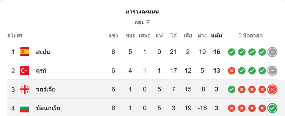 🧮 สถานการณ์บนตารางคะแนนกลุ่ม E