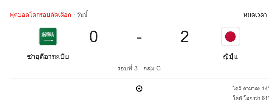 ผลบอลฟุตบอลโลก รอบคัดเลือก โซนเอเชีย 2024 ระหว่าง ทีมซาอุดีอาระเบีย vs ทีมญี่ปุ่น วันนี้ 11/10/67 ดูบอลย้อนหลัง คลิปไฮไลท์ ดูบอลฟุตบอลโลก รอบคัดเลือก โซนเอเชีย 2024