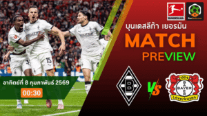 - วิเคราะห์บอลบุนเดสลีกา ระหว่าง โบรุสเซีย มึนเช่นกลัดบัค พบ ไบเออร์ เลเวอร์คูเซ่น 7/2/69