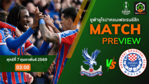 - วิเคราะห์บอลยูโรปา คอนเฟอเรนซ์ ลีก ระหว่าง คริสตัล พาเลซ พบ ซรินสกี้ 26/2/69