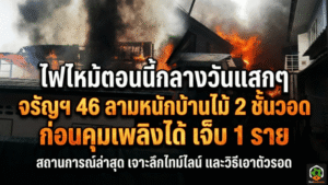 - ไฟไหม้กลางวันแสกๆ จรัญฯ 46 ลามหนักบ้านไม้ 2 ชั้นวอด ก่อนคุมเพลิงได้ เจ็บ 1 ราย