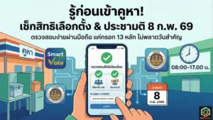 - รู้ก่อนเข้าคูหา – วิธี ตรวจสอบรายชื่อผู้มีสิทธิเลือกตั้ง และเช็กสิทธิประชามติ 8 ก.พ. 2569 ให้ชัวร์ก่อนออกไปกา