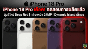 - iPhone 18 Pro เดือดตั้งแต่กุมภาพันธ์ – “ทดสอบการผลิต” แล้วจริง ลุ้นสีใหม่ Deep Red พร้อมอัปเกรดกล้องหน้า 24MP และ Dynamic Island เล็กลง