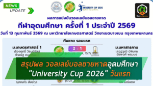 - ศึกทรายเดือด! สรุปผล วอลเลย์บอลชายหาดอุดมศึกษา “University Cup 2026” วันแรกเดือดจริง พร้อมโปรแกรมลุยต่อ 14 ก.พ. ที่บางเขน