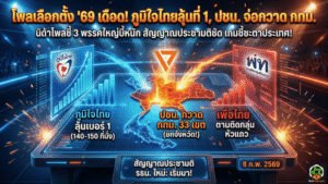 - โพลเลือกตั้ง 2569 เดือดเหมือนเกมชี้ชะตา นิด้าโพลชี้ ภูมิใจไทยลุ้นเบอร์ 1 140-150 ที่นั่ง ปชน.กวาด กทม. 33 เขต สัญญาณประชามติ รธน.ใหม่เริ่มมา