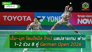 - เอ็ม-มุก ใจสู้แต่โดนความเก๋าไชนีส ไทเป บดปลายเกม พ่าย 1-2 ร่วง 8 คู่ German Open 2026