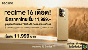 - เปิดราคา realme 16 เดือดตั้งแต่รุ่นเริ่มต้น 11,999 บาท สเปกแรง แบต 7,000mAh กล้องชัด ฟีเจอร์ครบ ลุ้นขึ้นแท่นมือถือคุ้มแห่งปี