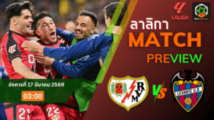 - วิเคราะห์บอล ลาลีกา สเปน ระหว่าง ราโย บาเยกาโน่ พบ เลบันเต้ 16/3/69