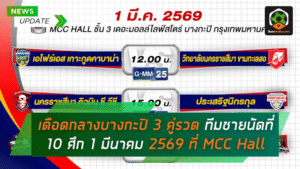 - ไลฟ์เดือดกลางบางกะปิ 3 คู่รวด ทีมชายนัดที่ 10 ศึก วอลเลย์บอลไทยแลนด์ลีก 1 มีนาคม 2569 ที่ MCC Hall