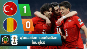 - บ้านผลบอล สรุปหลังเกม ฟุตบอลโลก 2026 รอบคัดเลือก โซนยุโรป เดือดจนหยดสุดท้าย เฟร์ดี้ คาดิโอกลู ซัดเชือด ตุรกี 1-0 โรมาเนีย กุมความได้เปรียบล่าตั๋วบอลโลก
