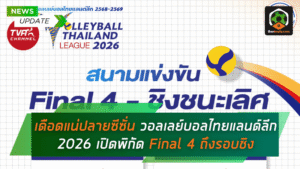 - เดือดแน่ปลายซีซั่น วอลเลย์บอลไทยแลนด์ลีก 2026 เปิดพิกัด Final 4 ถึงรอบชิง ใครมีทีมรักต้องรีบล็อกคิว