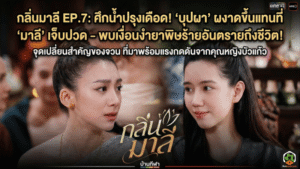 - เรื่องย่อกลิ่นมาลี EP.7 ศึกน้ำปรุงเดือด มาลีเจ็บลึก บุปผาขยับขึ้นแทนที่ ปมยาพิษเริ่มน่ากลัว