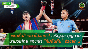 - แซมซั่นล้านนาไม่จกตา! เจริญสุข บุญลานนามวยไทย โหดจัดแทงเข่าหน้า “กัปตันทีม” ร่วงยก 3 ป้องกันแชมป์ราชดำเนิน รับโบนัส 3.5 แสน