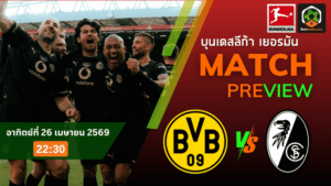 - วิเคราะห์บอล บุนเดสลีกา ระหว่าง โบรุสเซีย ดอร์ทมุนด์ พบ ไฟร์บวร์ก 26/4/69