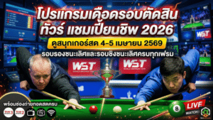 - ดูสนุกเกอร์สด 4-5 เมษายน 2569 โปรแกรมเดือดรอบตัดสิน ทัวร์ แชมเปี้ยนชิพ 2026 พร้อมช่องถ่ายทอดสดครบ
