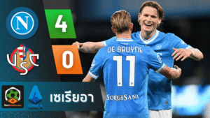 - บ้านผลบอล สรุปหลังเกม กัลโช่ เซเรีย อา เดือดจัด! เดอ บรอยน์ ฟอร์มโหดพา นาโปลี ถล่มยับ 4-0 ไล่ล่าพื้นที่หัวตารางแบบไม่ไว้หน้า