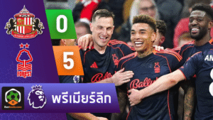 - บ้านผลบอล สรุปหลังเกม พรีเมียร์ลีกอังกฤษเดือดสนั่น! ฟอเรสต์บุกถล่มซันเดอร์แลนด์ 5-0 มิลินโควิชคุมหลังแน่น พาทีมขยับหนีโซนล่าง