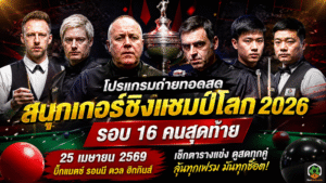 - ดูสนุกเกอร์สด 25 เมษายน 2569 โปรแกรมเดือด เวิลด์ แชมเปี้ยนชิพ 2026 รอบ 16 คน บิ๊กแมตช์ รอนนี ดวล ฮิกกินส์ ลุ้นผลสนุกเกอร์วันนี้