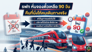 - รฟท.หั่นจองตั๋วล่วงหน้าเหลือ 90 วัน จัดระเบียบใหม่ ลดปัญหาจองทิ้ง-คืนที่นั่งให้คนเดินทางจริง