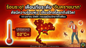 - กรมอุตุนิยมวิทยาเตือนร้อนระอุ ดัชนีความร้อนพุ่งระดับอันตรายมาก เสี่ยงฮีทสโตรกกลางแจ้งถึงชีวิต