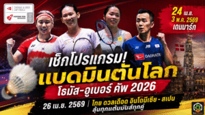 - เม ศุภนิดาตบเดือด! ไล่ถล่มบัลแกเรียขาดลอย พาสาวไทยพลิกนำศึกอูเบอร์ คัพ 2026
