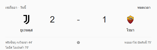 ชัยชนะเกมนี้คือสามแต้มสำคัญของยูเวนตุสที่กำลังไล่จี้หัวตารางแบบดุเดือด พร้อมโชว์หัวใจนักสู้ทั้งเกมรุกและรับ ส่วนโรม่าแม้แพ้ในเกมนี้ แต่การไล่กดช่วงท้ายก็สะท้อนให้เห็นสปิริตยอดทีม ยังมีลุ้นยืนระยะในกลุ่มหัวตารางต่อไปแน่นอน นี่คือแมตช์ที่เต็มไปด้วยจังหวะฟาวล์ ลุ้น VAR และโอกาสยิงอันตรายหลายครั้ง บ่งบอกว่าทั้งสองทีมสู้กันแบบไม่ถอย กลิ่นอายบอลอิตาลียุคดั้งเดิมผสมกลยุทธ์สมัยใหม่ได้อย่างเข้มข้น